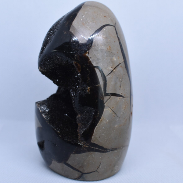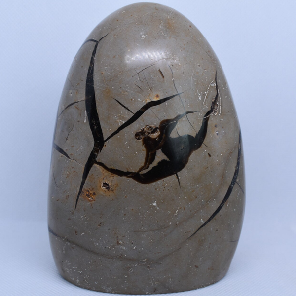 Formation : le septaria est une concrétion sédimentaire fossile, formée il y a environ 50 à 70 millions d’années, à partir de boues marines riches en argile, calcite, aragonite et barytine.