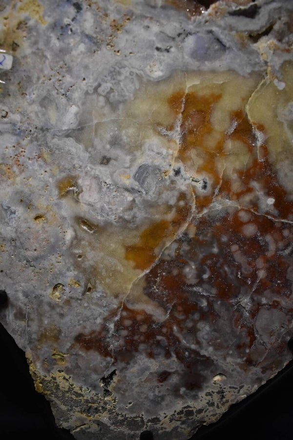 Avec ses 53 cm de hauteur, 31 cm de largeur et 3 cm d’épaisseur, elle offre une présence élégante, soutenue par son socle en métal sur mesure qui met parfaitement en valeur la beauté naturelle de la pierre.