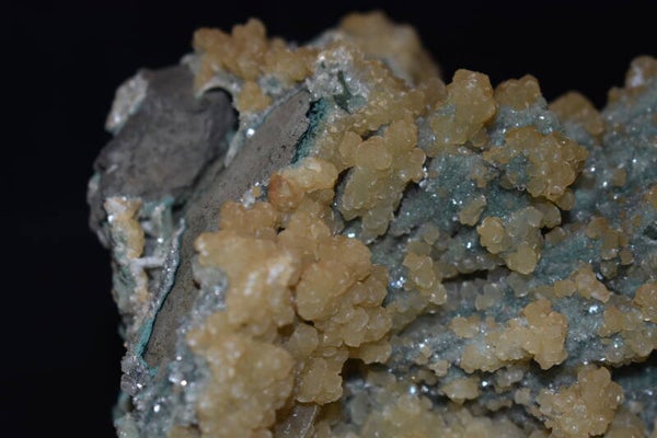 Découvrez une sublime pièce de Calcédoine Botryoïdale, une formation naturelle unique où la pierre se développe en petites sphères perlées. Cette pièce d’1,314 kg présente un magnifique contraste entre le jaune miel et des nuances bleutées / vert d’eau, typiques des zones riches en silice et minéraux volcaniques.