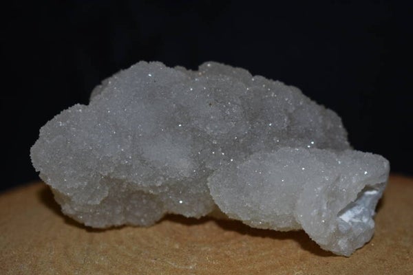 La surface est recouverte d’une micro-cristallisation scintillante qui crée un effet “sucre givré”, très recherché en collection et extrêmement photogénique.