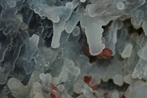 La texture botryoïdale et la coloration bleu-gris douce créent un ensemble très apaisant et élégant.