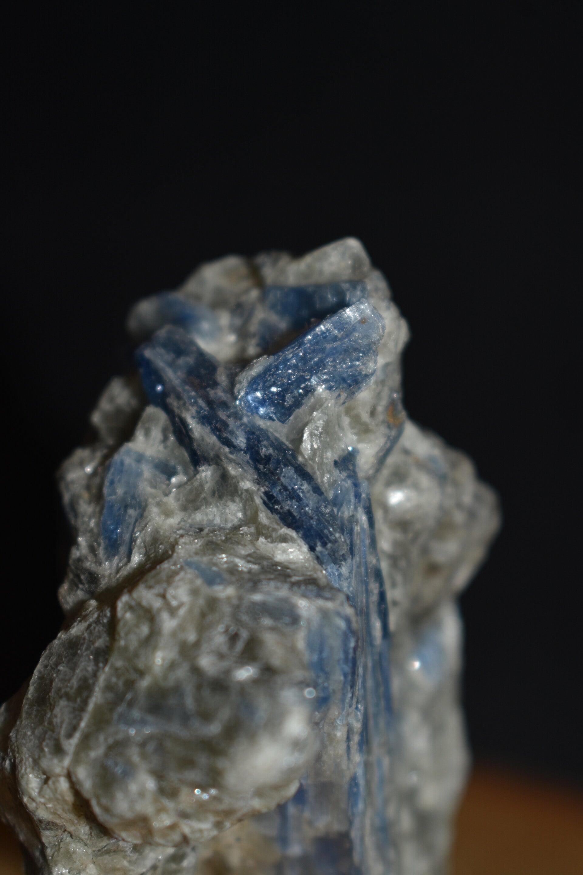 Magnifique morceau de kyanite bleue naturelle, avec ses lames fibreuses typiques et ses reflets bleu métallisé.