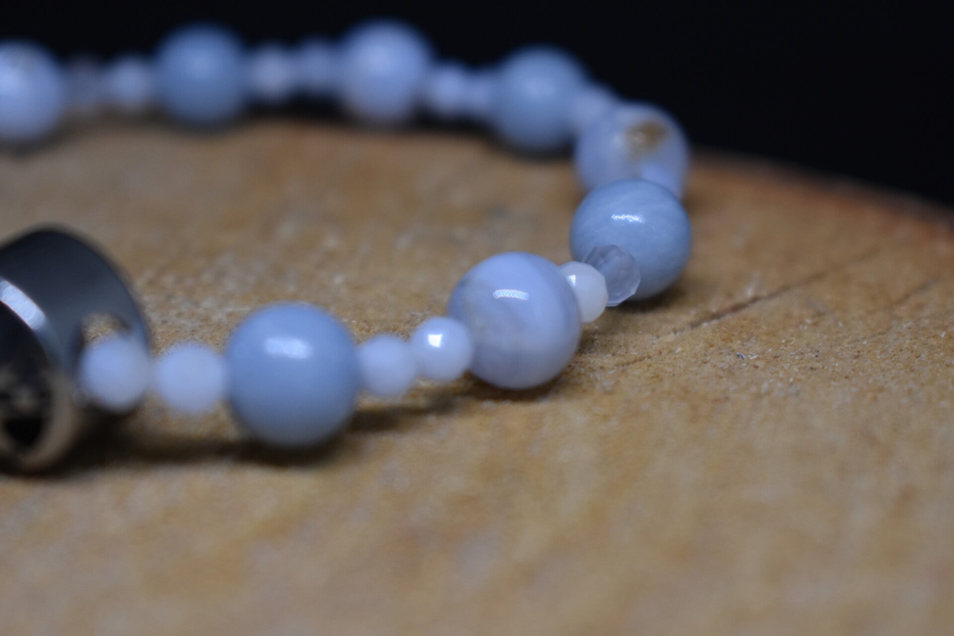 L’association de la Calcédoine et de l’Angélite crée une énergie douce, enveloppante et harmonisante, idéale pour apaiser le cœur et l’esprit.