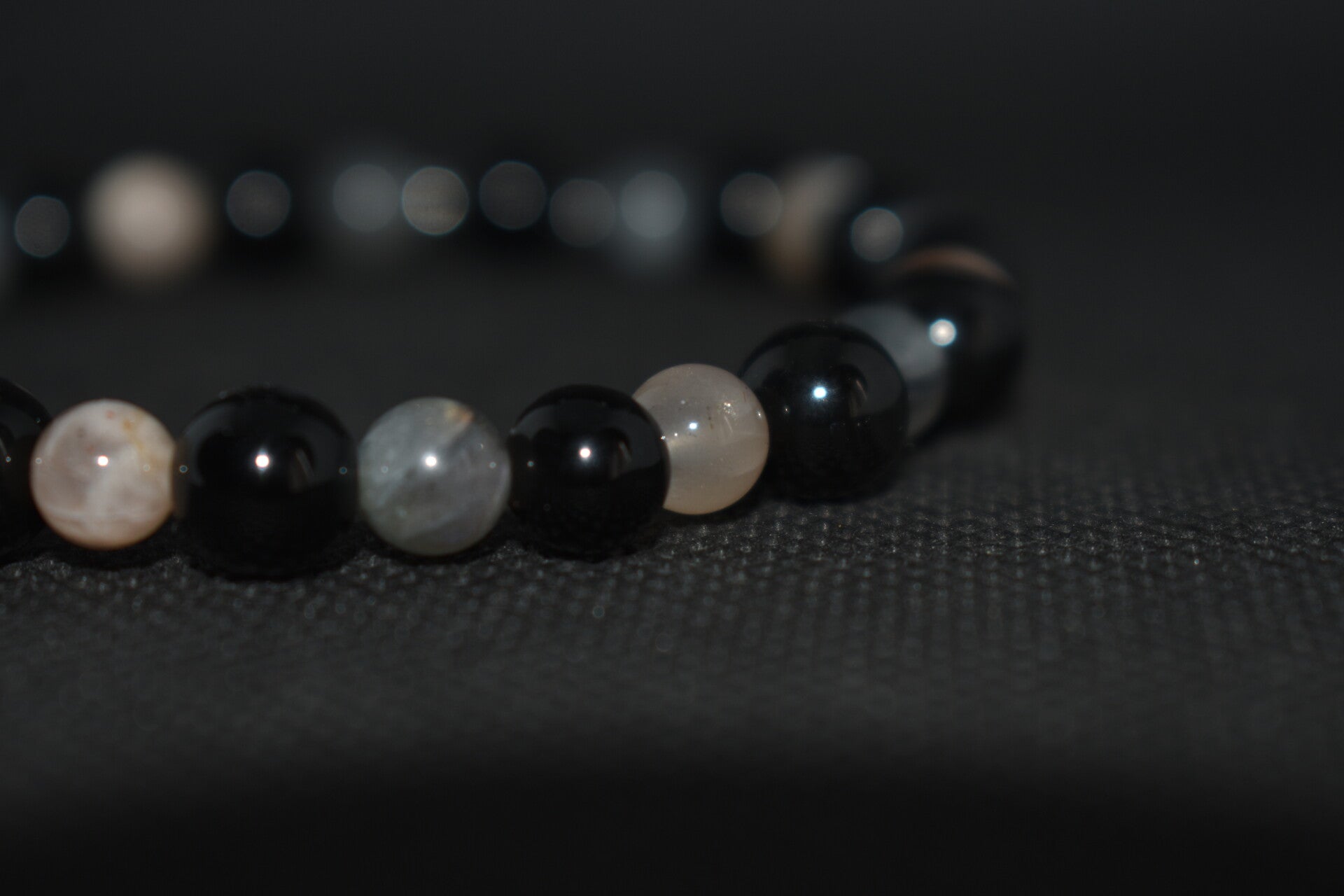 L’association de pierres aux reflets mystérieux et aux teintes nocturnes crée une énergie enveloppante, idéale pour les personnes sensibles, intuitives ou en quête d’équilibre émotionnel.