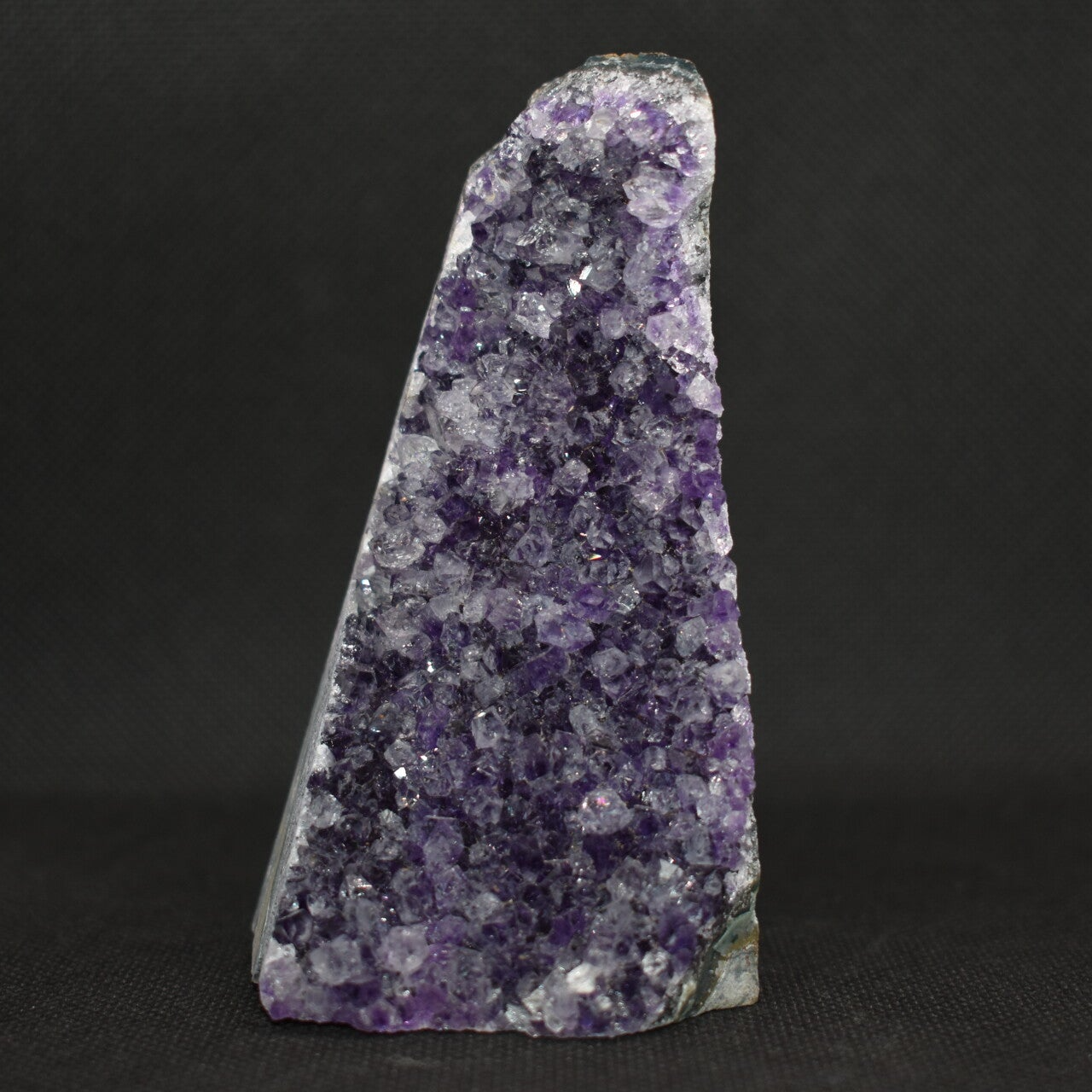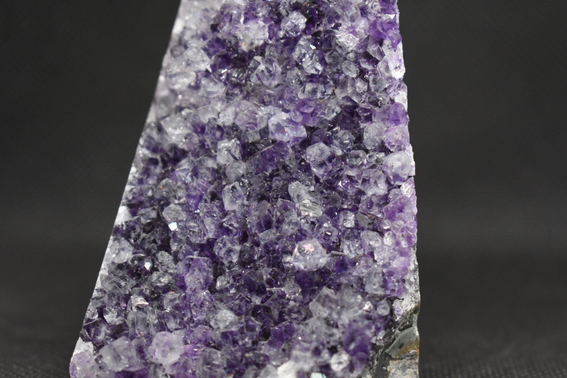Chaque améthyste étant unique, les formes, les nuances et la structure des cristaux font de cette pièce un objet minéral singulier.