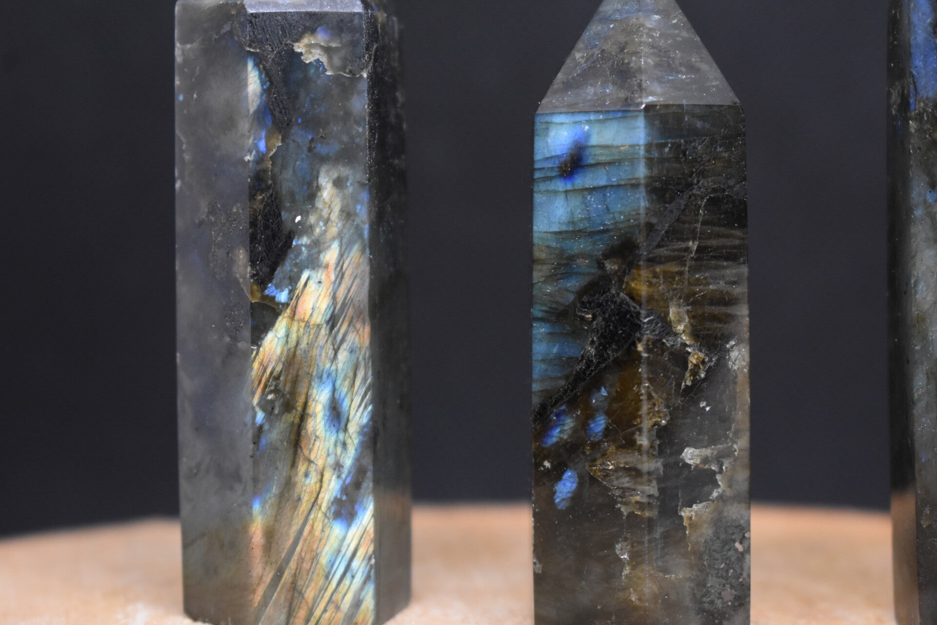 Chaque labradorite est unique et présente ses propres jeux de lumière et nuances naturelles.