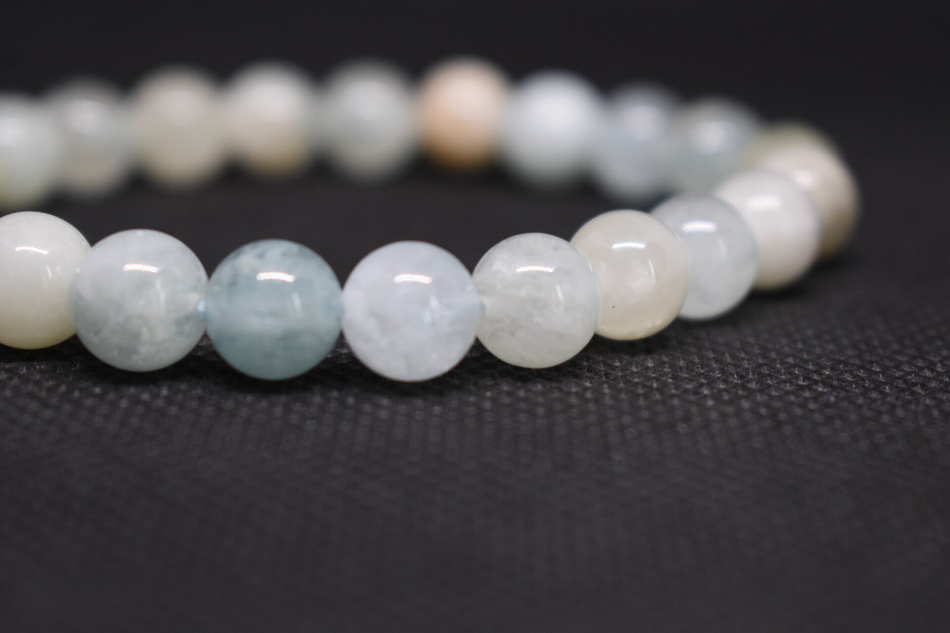 Plongez dans la douceur et la sérénité avec ce bracelet en Aigue-Marine naturelle, composé de perles de 8 mm soigneusement sélectionnées pour leur teinte délicate allant du bleu clair au blanc translucide.