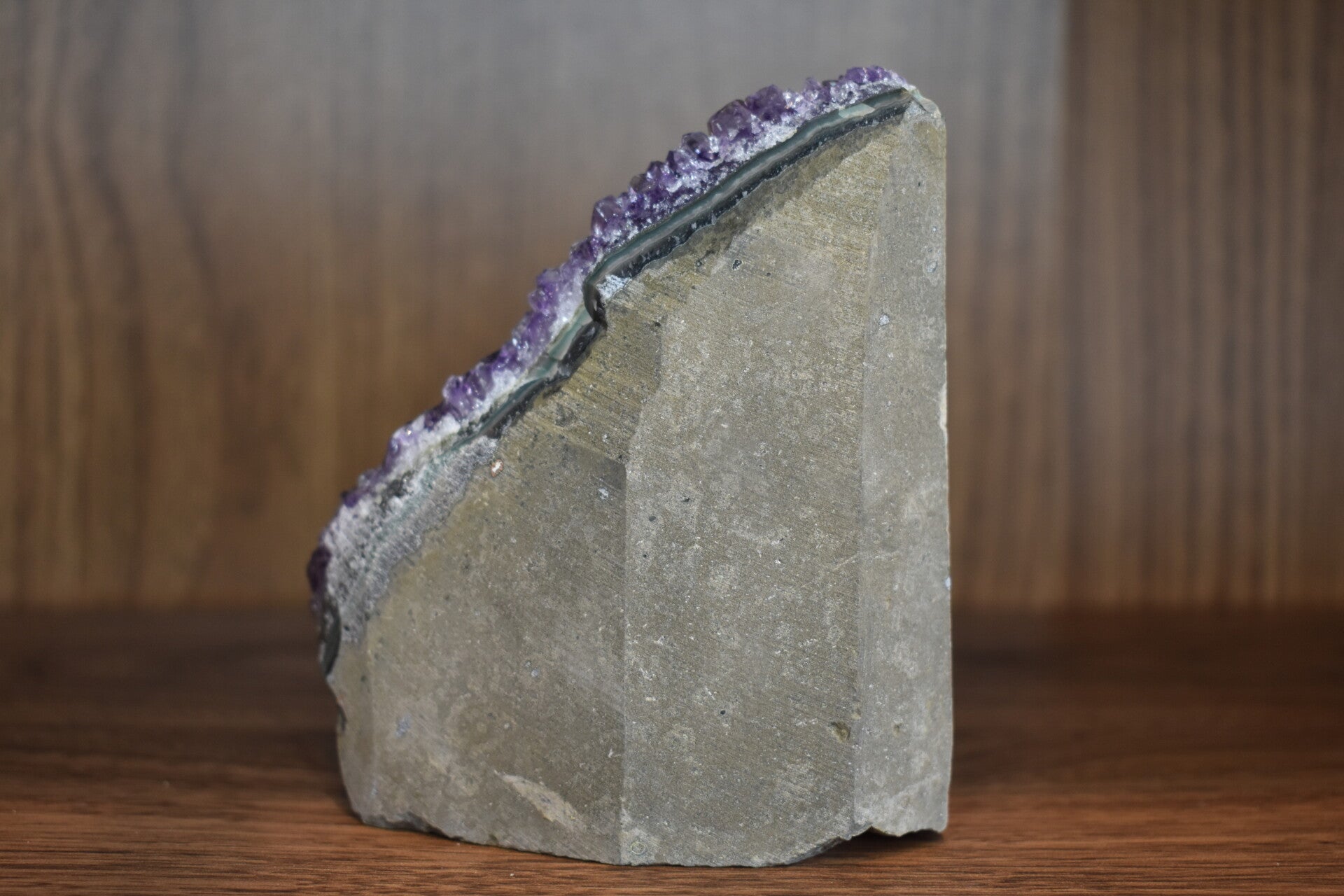 Magnifique géode d’améthyste naturelle aux cristaux généreux et bien développés. Sa surface riche et scintillante offre un violet intense avec de superbes reflets à la lumière. La structure compacte et légèrement inclinée donne à la pièce un aspect robuste et élégant, parfait pour une mise en valeur en vitrine.